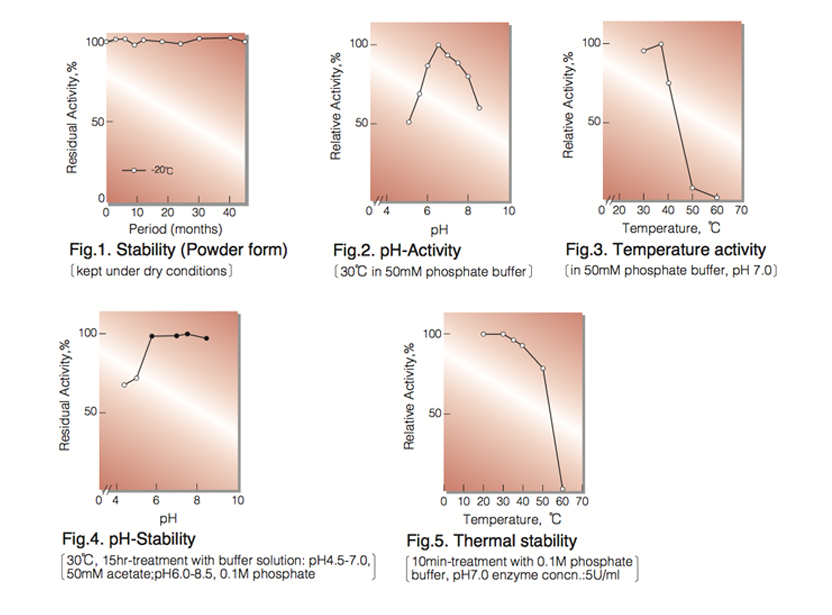 | Thermal stability : | below 40°C (pH7.0,10min)(Fig.5) |