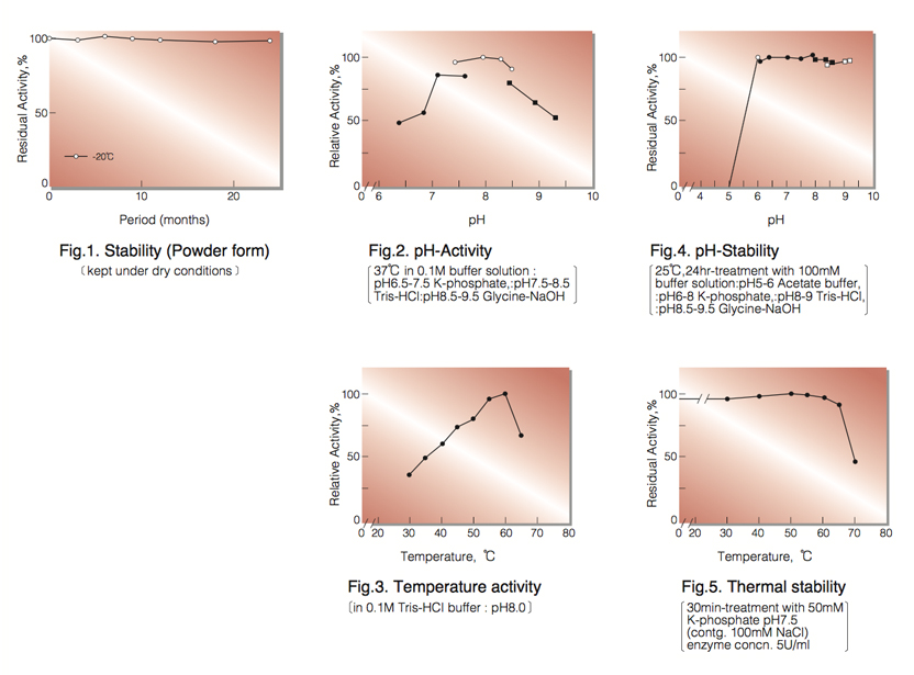 | Thermal stability : | below 60°C (pH 7.5, 30min)(Fig.5) |