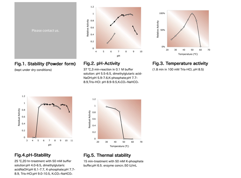 | Thermal stability : | below 40°C (pH 6.5, 15min)(Fig.5) |