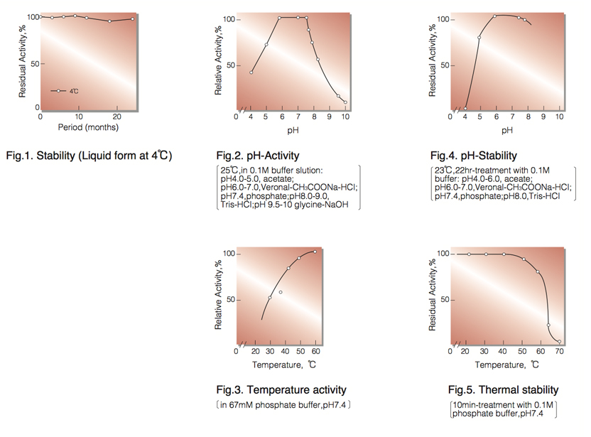 | Thermal stability : | below 50°C(pH 7.4, 10min)(Fig.5) |